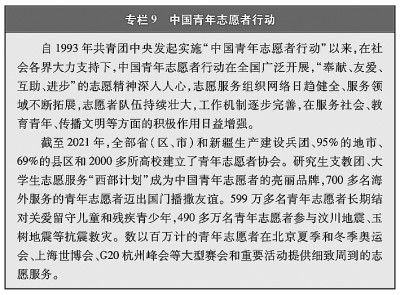 無論在城鎮(zhèn)還是鄉(xiāng)村、企業(yè)還是學(xué)校,青年都自覺把正確的道德認(rèn)知、自覺的道德養(yǎng)成、積極的道德實(shí)踐緊密結(jié)合起來,帶頭倡導(dǎo)向上向善社會(huì)風(fēng)氣、塑造社會(huì)文明新風(fēng)尚。在城鄉(xiāng)社區(qū)建設(shè)中,越來越多的青年投身社區(qū)治理和服務(wù)體系建設(shè),主動(dòng)參加“社區(qū)青春行動(dòng)”,加強(qiáng)實(shí)踐鍛煉、提升服務(wù)貢獻(xiàn)。在各行各業(yè),青年秉承“敬業(yè)、協(xié)作、創(chuàng)優(yōu)、奉獻(xiàn)”的理念,踴躍創(chuàng)建“青年文明號(hào)”,大力弘揚(yáng)新時(shí)代職業(yè)文明,展現(xiàn)新時(shí)代職業(yè)形象。廣大青年運(yùn)動(dòng)員弘揚(yáng)體育道德風(fēng)尚,以良好的賽風(fēng)賽紀(jì)和文明禮儀,獲得競(jìng)技成績和精神文明雙豐收。1993年“中國青年志愿者行動(dòng)”啟動(dòng)以來,志愿服務(wù)成為青年參與社會(huì)治理、履行社會(huì)責(zé)任的一面旗幟,成為青年在奉獻(xiàn)人民、服務(wù)社會(huì)中鍛煉成長的重要途徑。截至2021年底,全國志愿服務(wù)信息系統(tǒng)中14歲至35歲的注冊(cè)志愿者已超過9000萬人,他們活躍在社區(qū)建設(shè)、大型賽事、環(huán)境保護(hù)、扶貧開發(fā)、衛(wèi)生健康、應(yīng)急救援、文化傳承等各個(gè)領(lǐng)域,弘揚(yáng)“奉獻(xiàn)、友愛、互助、進(jìn)步”的志愿精神,在全社會(huì)形成團(tuán)結(jié)互助、平等友愛、共同前進(jìn)的新風(fēng)尚。中國青年志愿者扶貧接力計(jì)劃研究生支教團(tuán)、大學(xué)生志愿服務(wù)“西部計(jì)劃”連續(xù)18年派遣41萬余名研究生、大學(xué)畢業(yè)生,到中西部2100多個(gè)縣(市區(qū)旗)開展扶貧支教、衛(wèi)生醫(yī)療等志愿服務(wù)。青年始終是大型賽會(huì)志愿服務(wù)的主體力量,給千家萬戶乃至全世界留下深刻印象。