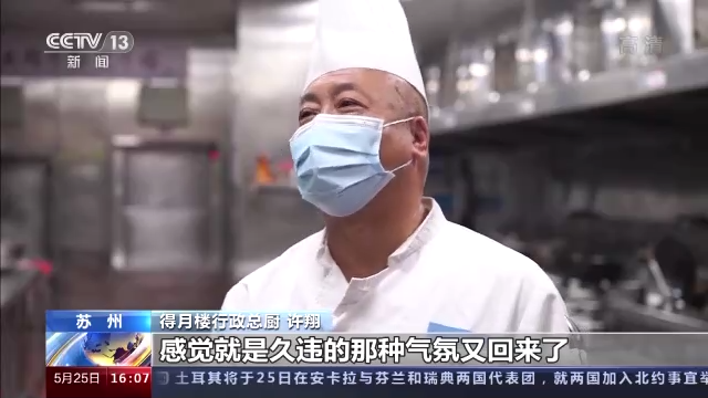得月樓行政總廚 許翔:重新做松鼠桂魚的話,感覺那種久違的氣氛又回來了。19歲進(jìn)得月樓,一直做到現(xiàn)在。今年是60歲,從業(yè)40多年吧,從來沒有碰到過像疫情這樣的事情,停業(yè)三個月。