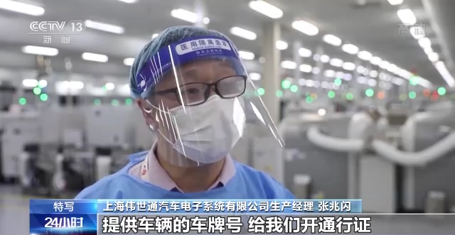 上海偉世通汽車電子系統(tǒng)有限公司生產(chǎn)經(jīng)理 張兆閃:物流通道方面說(shuō)真的政府也已經(jīng)給了我們很多的支持,比如說(shuō)提供車輛的車牌號(hào)和給我們開(kāi)通行證等。