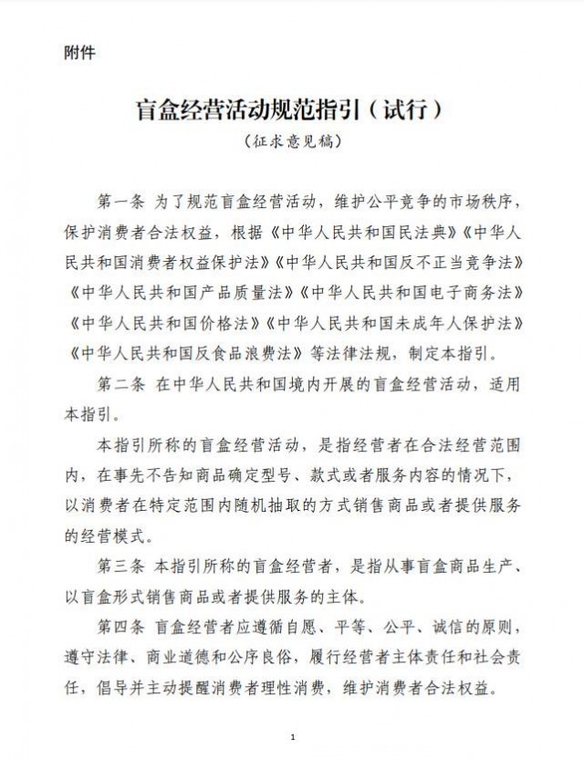 附件:盲盒經(jīng)營活動(dòng)規(guī)范指引(試行)(征求意見稿)