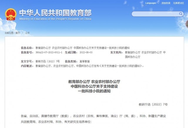 二、有關省級教育行政部門要引導相關研究生培養(yǎng)單位,通過增量傾斜和存量調整,優(yōu)先滿足科技小院農業(yè)專業(yè)學位人才培養(yǎng)的招生計劃需求。有關科技小院所在區(qū)縣農業(yè)農村部門要將科技小院納入當?shù)剞r業(yè)技術服務和農民培訓體系。各級科協(xié)要鼓勵發(fā)揮基層農技協(xié)的作用,支持基層農技協(xié)參與科技小院建設。