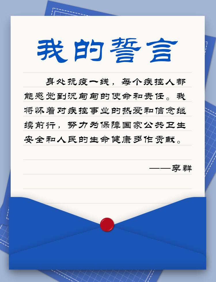 被選為黨的二十大代表后,李群說(shuō):“深感使命光榮、責(zé)任重大。我是全國(guó)21萬(wàn)‘疾控人’中的普通一員,我們是平凡的‘疾控人’,但承擔(dān)著不平凡的疾控責(zé)任——守護(hù)人民健康和生命安全?!?/p>