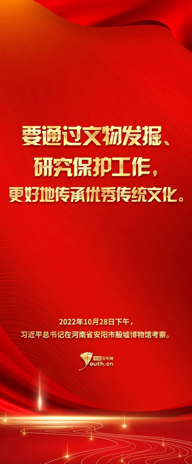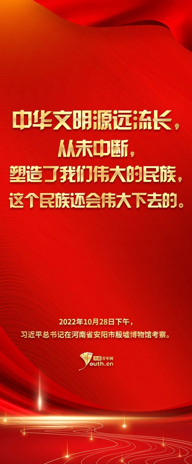 參天之木,必有其根;懷山之水,必有其源。習總書記的這次殷墟考察之行,讓我們將目光再次聚焦到中華民族的傳統(tǒng)文化之上。青山百代,仍蔭后人。正如習總書記指出的——中華優(yōu)秀傳統(tǒng)文化是我們黨創(chuàng)新理論的“根”,我們推進馬克思主義中國化時代化的根本途徑是“兩個結(jié)合”——民族要獨立自強,國家欲穩(wěn)步發(fā)展,文化是來自深處的支撐。作為當代青年,我們理應(yīng)響應(yīng)時代號召,跟隨習近平總書記的腳步,去深入了解學習中華文明,兼顧歷史之沉淀與時代之新意,在向世界發(fā)揚中華氣象的同時,也邀得當年之明月照徹今人。