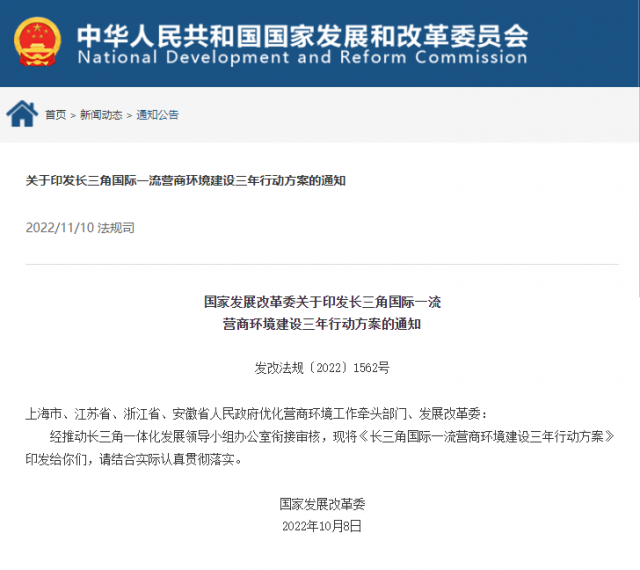 國(guó)家發(fā)展改革委指出,長(zhǎng)三角一體化發(fā)展戰(zhàn)略實(shí)施以來(lái),長(zhǎng)三角地區(qū)優(yōu)化營(yíng)商環(huán)境成效明顯,參與國(guó)際競(jìng)爭(zhēng)合作新優(yōu)勢(shì)不斷增強(qiáng),但長(zhǎng)三角地區(qū)營(yíng)商環(huán)境建設(shè)還存在不少短板弱項(xiàng),重點(diǎn)領(lǐng)域關(guān)鍵環(huán)節(jié)改革任務(wù)仍然艱巨,達(dá)到國(guó)際一流水平仍需加力。
