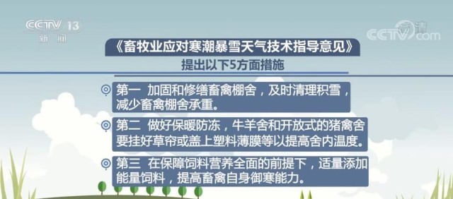 央視網(wǎng)消息:記者12月1日從農(nóng)業(yè)農(nóng)村部了解到,為了應(yīng)對寒潮天氣,保障畜禽安全過冬,最大程度降低災(zāi)害損失,農(nóng)業(yè)農(nóng)村部畜牧獸醫(yī)局組織畜牧生產(chǎn)專家編制了《畜牧業(yè)應(yīng)對寒潮暴雪天氣技術(shù)指導(dǎo)意見》,提出5方面措施指導(dǎo)生產(chǎn)。