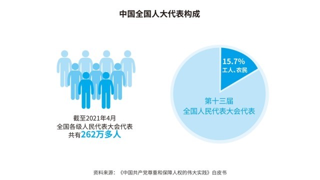 中國從本國國情實際出發(fā),不斷發(fā)展全過程人民民主,完善人民當家作主制度體系,建立了人民代表大會制度、中國共產(chǎn)黨領(lǐng)導的多黨合作和政治協(xié)商制度、民族區(qū)域自治制度和基層群眾自治制度,為人民享有更加廣泛、更加充分、更加全面的民主權(quán)利奠定了堅實的制度基礎。
