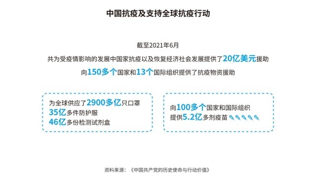 中國先后批準或加入了30余項國際人權(quán)文書,其中包括6項聯(lián)合國核心人權(quán)條約;累計共向166個國家和國際組織提供了援助,派遣60多萬名援助人員;多次無條件免除重債窮國和最不發(fā)達國家對華到期政府無息貸款債務。在聯(lián)合國維和行動中,中國是安理會常任理事國第一大出兵國,30多年來累計派出維和官兵5萬余人次。共建“一帶一路”已成為助力各國發(fā)展、深受世界歡迎的新興國際公共產(chǎn)品,據(jù)世界銀行研究報告,到2030年,將使相關(guān)國家760萬人擺脫極端貧困、3200萬人擺脫中度貧困。新冠肺炎疫情暴發(fā)以來,中國努力促進新冠疫苗在全球范圍內(nèi)公平合理分配,成為全球?qū)ν馓峁┮呙鐢?shù)量最多的國家。