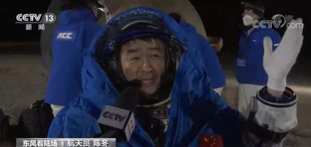 航天員 陳冬:6個月忙碌而又充實的太空之旅,很有幸,見證了中國空間站基本構型建成,我們像流星一樣回到祖國的懷抱,我為偉大祖國感到驕傲。
