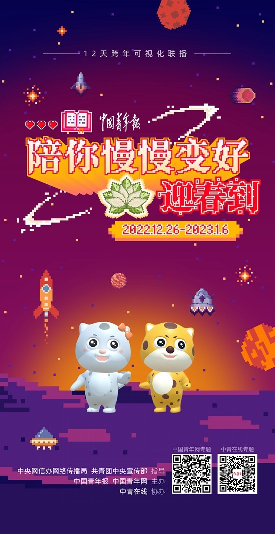 本次可視化聯(lián)播活動(dòng)由中央網(wǎng)信辦網(wǎng)絡(luò)傳播局、共青團(tuán)中央宣傳部指導(dǎo),《中國(guó)青年報(bào)》、中國(guó)青年網(wǎng)主辦,中青在線協(xié)辦。連續(xù)12天的跨年聯(lián)播、直播,以及與之相呼應(yīng)的傳統(tǒng)紙媒形態(tài)的圖文報(bào)道、評(píng)論,新媒體形態(tài)的H5、MV、小程序,新文化業(yè)態(tài)的“青春元宇宙”融合傳播,旨在記錄不同行業(yè)年輕人的故事,關(guān)照和關(guān)愛(ài)當(dāng)下年輕人在抗疫、就業(yè)等壓力下的身心健康和成長(zhǎng)成才,倡導(dǎo)青春上善好活法,同時(shí)探索云端思政課堂新模式,用“真”字做好黨的二十大精神的青年化闡釋。