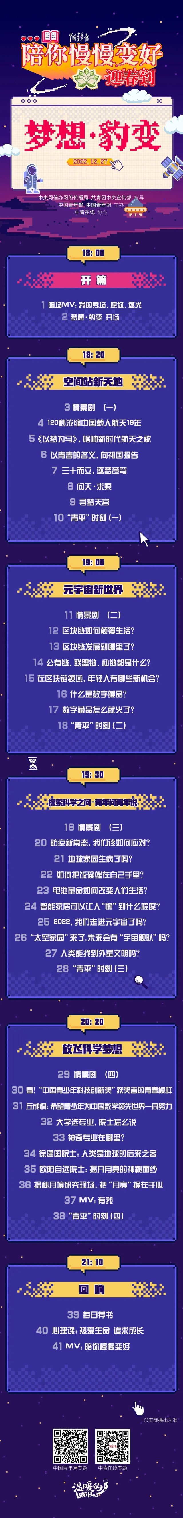 在這場(chǎng)聯(lián)播節(jié)目中,4位年輕記者將通過自己的經(jīng)歷和故事,和大家一起回顧2022年與科技創(chuàng)新有關(guān)的瞬間,重溫那些帶給我們“夢(mèng)想”和“豹變”的激情時(shí)刻。聯(lián)播由空間站新天地、元宇宙新世界、探索科學(xué)之問、放飛科學(xué)夢(mèng)想等四大篇章組成,重磅環(huán)節(jié)“探索科學(xué)之問”將聯(lián)合北京市科協(xié),共同推出聯(lián)名款“青年問青年說”,青年科學(xué)家和大學(xué)生一起盤點(diǎn)這些熱點(diǎn)科技問題:防疫新常態(tài),我們?cè)撊绾螒?yīng)對(duì)?極端天氣頻發(fā),地球家園生病了?2022年,我們走進(jìn)元宇宙了嗎?“太空家園”來了,未來會(huì)不會(huì)有“宇宙艦隊(duì)”…… 12月27日,我們不見不散。
