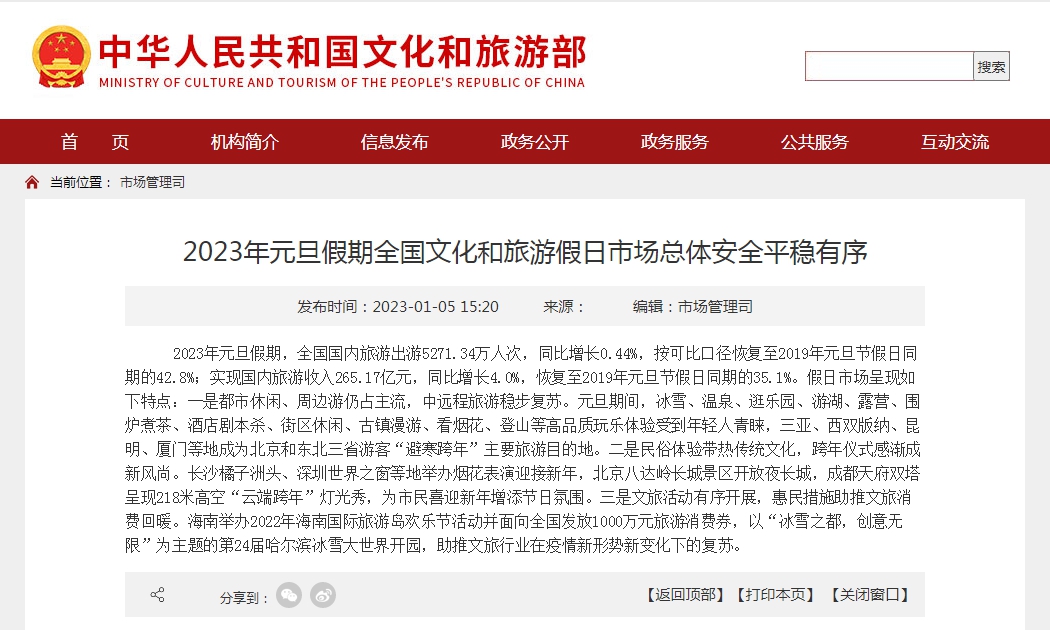 官方:元旦假期國內(nèi)出游5271.34萬人次 體現(xiàn)三大特點