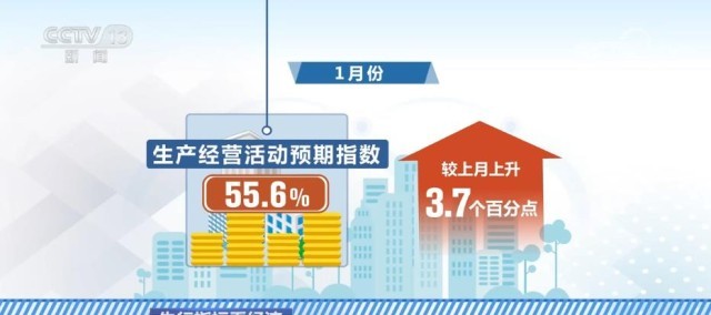 企業(yè)預(yù)期趨于樂觀,1月份生產(chǎn)經(jīng)營活動(dòng)預(yù)期指數(shù)為55.6%,較上月上升3.7個(gè)百分點(diǎn)。