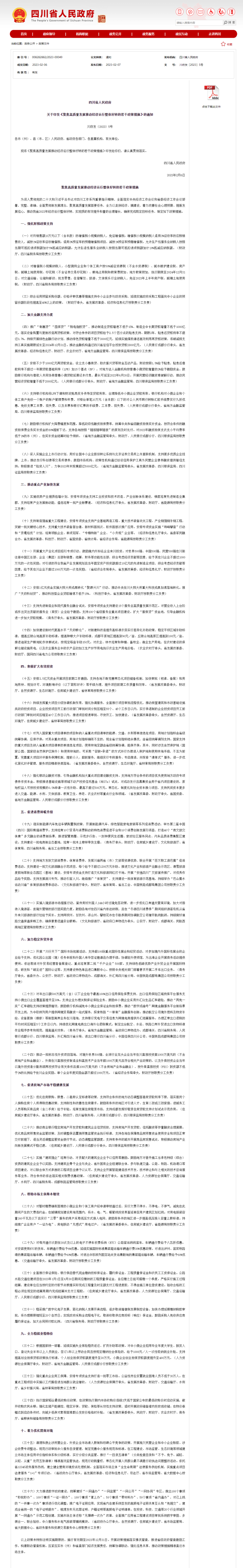 央視網消息:四川省人民政府印發(fā)《聚焦高質量發(fā)展推動經濟運行整體好轉的若干政策措施》。其中,在促進房地產市場平穩(wěn)健康發(fā)展方面:優(yōu)化住房限購、限售、二套房認定標準等政策,支持符合條件的地方動態(tài)調整首套房貸款利率下限,落實居民個人換購住房個人所得稅優(yōu)惠政策,支持剛性和改善性住房需求。鼓勵有條件的地區(qū)對引進人才、生育二孩或三孩家庭、進城務工人員等購買商品房(含二手房)給予補貼。培育發(fā)展住房租賃市場,支持成都發(fā)揮好租賃住房貸款支持計劃試點示范作用。
