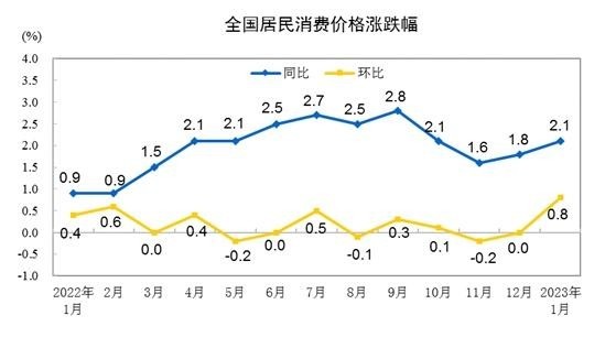 中新網(wǎng)2月10日電(中新財(cái)經(jīng)記者 謝藝觀)10日,國(guó)家統(tǒng)計(jì)局公布2023年1月份全國(guó)居民消費(fèi)價(jià)格(CPI)數(shù)據(jù)。受春節(jié)效應(yīng)和疫情防控政策優(yōu)化調(diào)整等因素影響,1月份CPI同比上漲2.1%,重回“2時(shí)代”。