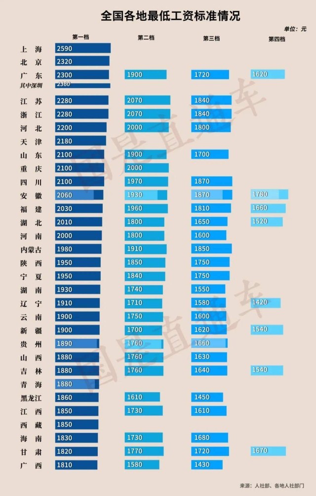 滬京粵最低工資標(biāo)準(zhǔn)全國領(lǐng)先