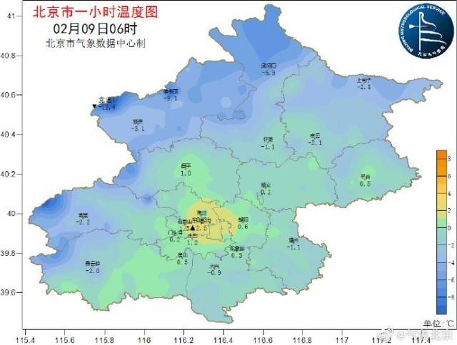 2月9日6時(shí)45分,北京南郊觀象臺(tái)氣溫為0℃,地面溫度-1.7℃。目前北京市城區(qū)氣溫在0~2℃之間,受降雪天氣影響,預(yù)計(jì)今天白天最高氣溫只有1℃,降溫明顯,體感陰冷,外出時(shí)還需注意防寒保暖,謹(jǐn)防感冒和心腦血管疾病的發(fā)生。