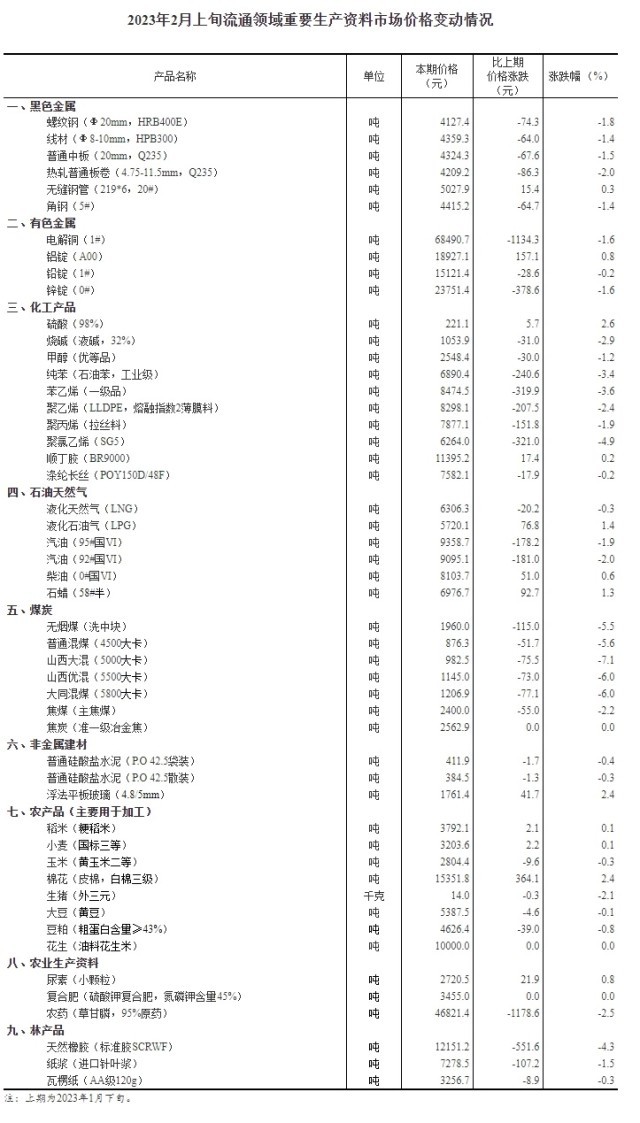 中新網2月14日電 據國家統(tǒng)計局網站14日消息,據對全國流通領域9大類50種重要生產資料市場價格的監(jiān)測顯示,2023年2月上旬與1月下旬相比,12種產品價格上漲,35種下降,3種持平。其中,生豬(外三元)價格為14元/千克,較1月下旬相比下降2.1%。(中新財經)