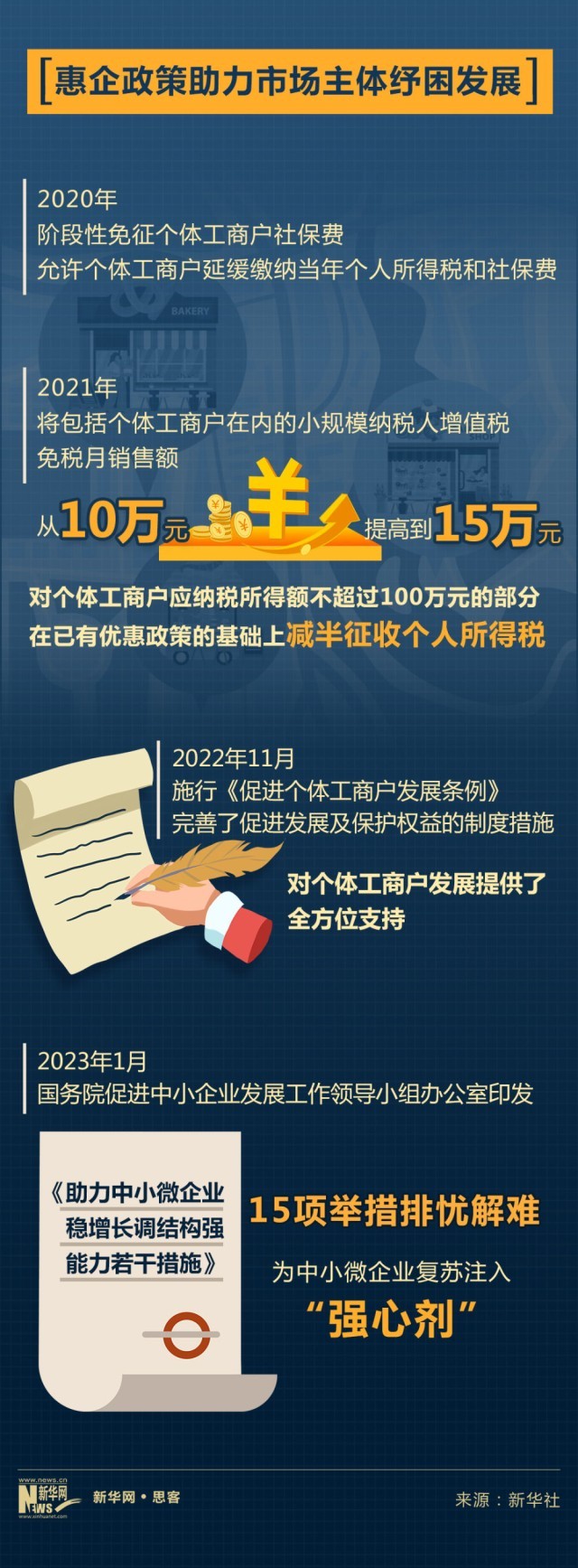 煥發(fā)個體經(jīng)濟生機活力,離不開稅收“輸血給氧”。近年來,各地區(qū)、各部門也出臺了一系列幫扶個體工商戶等小微市場主體發(fā)展的政策措施,精準扶困。