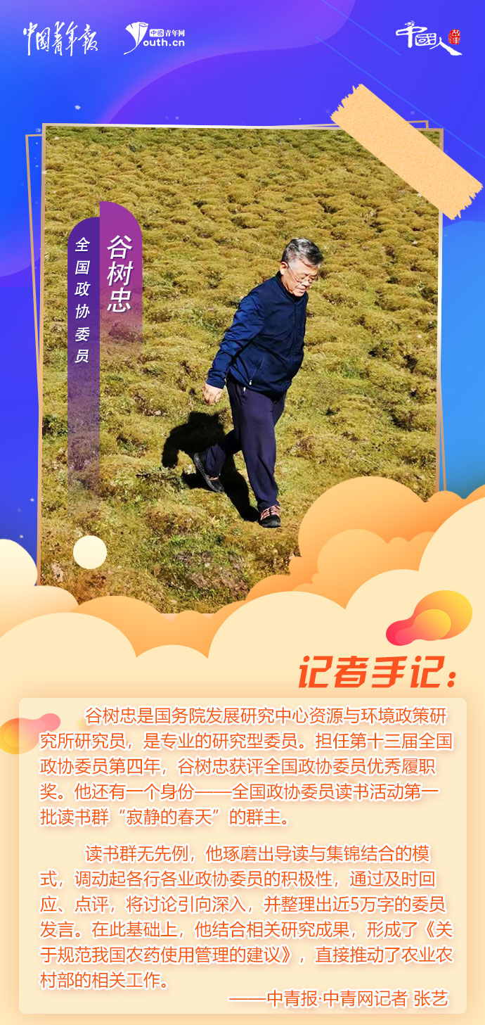 他常來奧森公園鍛煉,一圈5公里,先慢后快,他有自己的節(jié)奏。他是國務(wù)院發(fā)展研究中心資源與環(huán)境政策研究所研究員,是專業(yè)的研究型委員。擔(dān)任第十三屆全國政協(xié)委員第四年,谷樹忠獲評全國政協(xié)委員優(yōu)秀履職獎。他還有一個身份——全國政協(xié)委員讀書活動第一批讀書群“寂靜的春天”的群主。