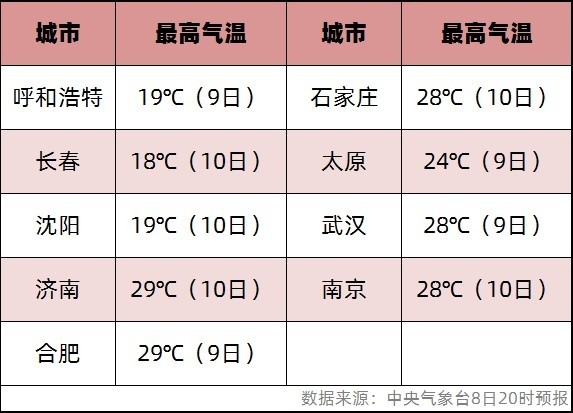 多地最高氣溫還將繼續(xù)突破紀(jì)錄。大城市中,呼和浩特、長春、沈陽、濟(jì)南、合肥氣溫都可能刷新當(dāng)?shù)?月上旬最高紀(jì)錄,石家莊、太原、武漢、南京等地也會經(jīng)歷同期少見的暖。