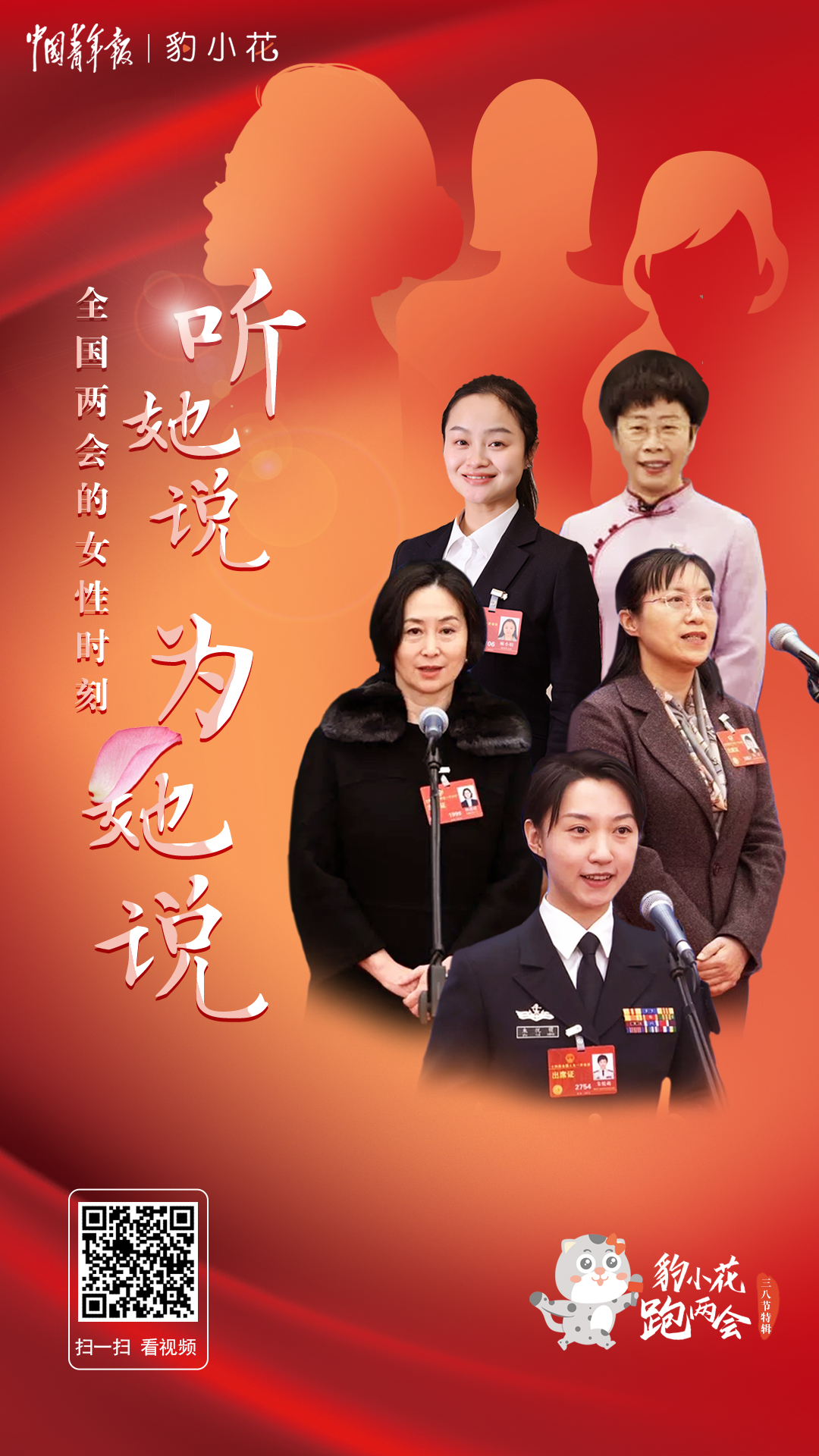 在今年全國兩會上,一位位女性代表委員履職建言,貢獻“她的聲音”:95后代表朱悅萌把青春和夢想融入祖國的航母事業(yè),她說,“艦艏行處是長城,國家利益所至,海軍航跡必達!”水慶霞代表說起中國女足的熱愛與堅持,鏗鏘玫瑰永不言敗。中國殘疾人聯(lián)合會理事楊洋委員說:“被光照耀的我們也想成為光照耀別人?!薄瑫r,也有不少代表委員在為女性群體的利益發(fā)聲。豹小花跑兩會今天推出三八國際婦女節(jié)特輯,和你一起關注全國兩會上的“女性時刻”。