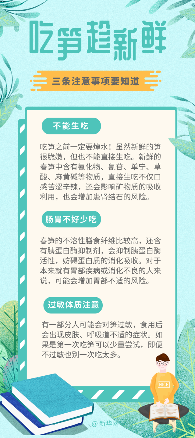 春季吃筍正當(dāng)時,但春筍吃不對也會帶來健康風(fēng)險。近日“男子貪吃春筍后嘔血又暈厥”的新聞就給人們提了個醒,那吃筍有哪些注意事項呢?