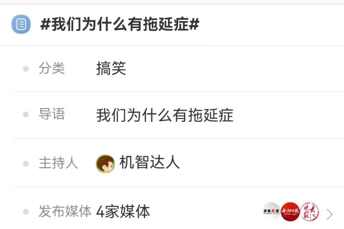 不過,年輕人使用這個(gè)梗時(shí)的狀態(tài),往往是“半真半假”:一方面為自己的“拖延”感到焦慮、自責(zé),所以選擇勇敢地說出來,并且試圖在同道中人的回應(yīng)里尋找共鳴;另一方面,“拖延癥”并不是一個(gè)真的讓人感到萬分愧疚的詞匯,人們在玩梗時(shí)甚至可能帶上些許調(diào)侃色彩,在一定程度上減輕心理負(fù)擔(dān),何樂而不為?