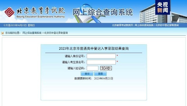 4月22日,北京教育考試院公布了今年本市普通高中登記入學(xué)錄取結(jié)果。報(bào)名學(xué)生可通過考試院網(wǎng)站,輸入身份證號(hào)和考生報(bào)名號(hào)查詢。