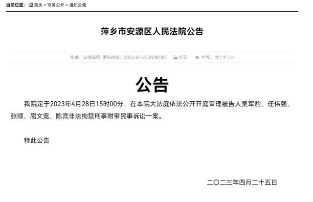 記者今天(25日)獲悉,備受關(guān)注的江西南昌豫章書院非法拘禁刑事附帶民事訴訟一案將于4月28日15時(shí)在江西省萍鄉(xiāng)市安源區(qū)人民法院繼續(xù)開庭審理。