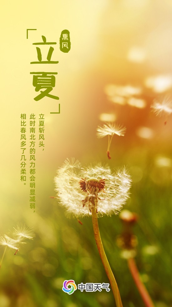 正所謂“立夏斬風頭”。到了立夏,我國各地風力明顯減弱,夏日的風不再像春季那樣喧囂狂躁,相比春風也多了幾分柔和。
