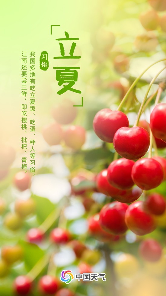 立夏還是品嘗美食的好時節(jié),許多家庭會將赤豆、黃豆、黑豆、豌豆、綠豆做成“立夏飯”,寓意“五谷豐登”。江南有“嘗三鮮”的習俗,即品嘗甜蜜櫻桃、爽口青梅以及清甜枇杷。