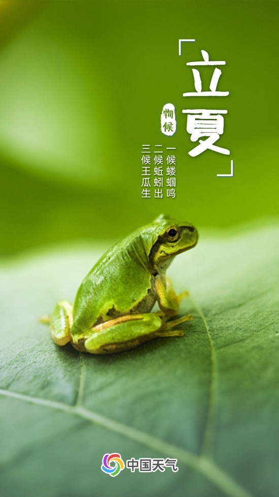 立夏一候“螻蟈鳴”,也叫“蛙始鳴”,說的是這一時節(jié)青蛙逐漸開始活躍、聒噪起來;二候“蚯蚓出”,此時蚯蚓懶洋洋地開始翻松泥土了;三候“王瓜生”,這里的王瓜泛指藤蔓類植物,此時開始攀爬生長,綠意盎然。立夏時節(jié),萬物已褪去了春日的青嫩,開始日日攀長,至此萬物繁茂。