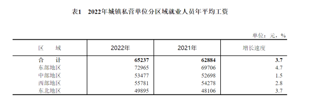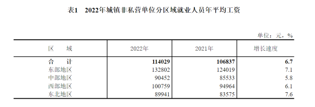 數(shù)據(jù)顯示,2022年,全國(guó)城鎮(zhèn)非私營(yíng)單位就業(yè)人員年平均工資為114029元,比上年增長(zhǎng)6.7%,增速比2021年回落3.0個(gè)百分點(diǎn),扣除價(jià)格因素實(shí)際增長(zhǎng)4.6%;城鎮(zhèn)私營(yíng)單位就業(yè)人員年平均工資為65237元,比上年增長(zhǎng)3.7%,回落5.2個(gè)百分點(diǎn),扣除價(jià)格因素實(shí)際增長(zhǎng)1.7%。