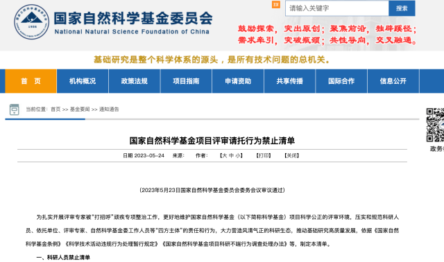 國家自然科學(xué)基金項(xiàng)目評審請托行為禁止清單