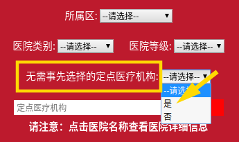 進入頁面后,點擊“無需事先選擇的定點醫(yī)療機構(gòu)”選項,選擇“是”。