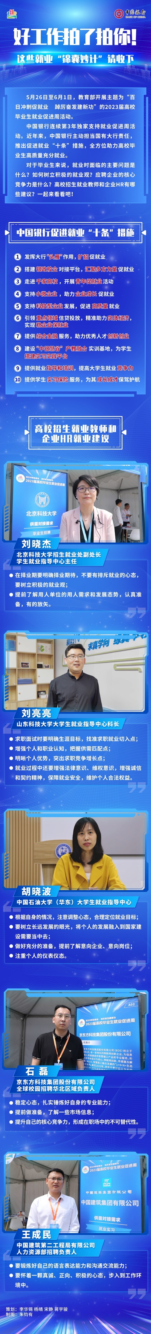 5月26日至6月1日,教育部開展主題為“百日沖刺促就業(yè)距厲奮發(fā)建新功”的2023屆高校畢業(yè)生就業(yè)促進(jìn)周活動。中國銀行連續(xù)第3年獨家支持就業(yè)促進(jìn)周活動。近年來,中國銀行主動擔(dān)當(dāng)國有大行責(zé)任推出促進(jìn)就業(yè)“十條”措施,全方位助力高校畢業(yè)生高質(zhì)量充分就業(yè)。對于畢業(yè)生來說,就業(yè)時面臨的主要問題是什么? 如何樹立積極的就業(yè)觀? 應(yīng)聘企業(yè)的核心競爭力是什么? 高校招生就業(yè)教師和企業(yè)HR有哪些建議? 一起來看看吧?。ㄖ袊嗄昃W(wǎng)記者 李華錫 楊晴 宋靜 蔣宇駿 朱鈞有)