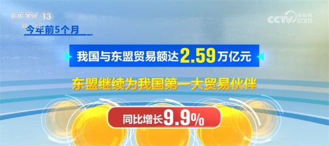 今年前5個月,我國與東盟貿(mào)易額達2.59萬億元,東盟繼續(xù)為我國第一大貿(mào)易伙伴,同比增長9.9%。