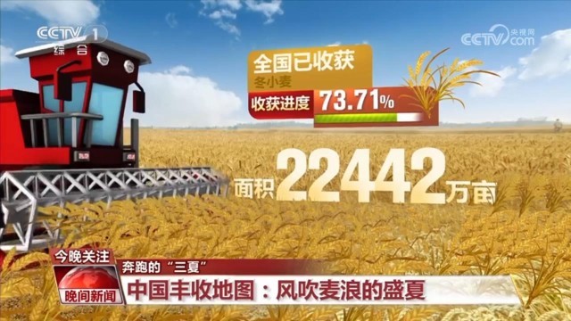 央視網(wǎng)消息:夏糧搶收忙,顆粒皆歸倉。讓我們繼續(xù)打開本周的中國豐收地圖,去各地的農(nóng)田里,感受夏收的喜悅與繁忙。