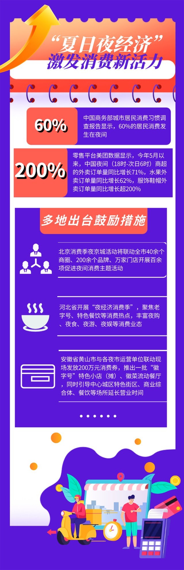 據(jù)中國商務(wù)部城市居民消費習(xí)慣調(diào)查報告顯示,60%的居民消費發(fā)生在夜間。多姿多彩的夜生活,在為人們帶來更多體驗的同時,也點燃了“夏日夜經(jīng)濟(jì)”,激發(fā)出消費新活力。
