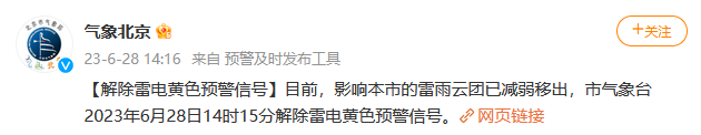 北京市氣象臺解除雷電黃色預(yù)警