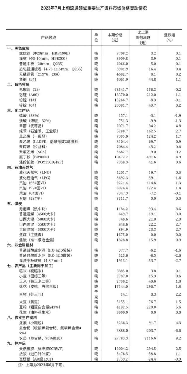 國家統(tǒng)計(jì)局:7月上旬流通領(lǐng)域重要生產(chǎn)資料市場35種產(chǎn)品價格上漲