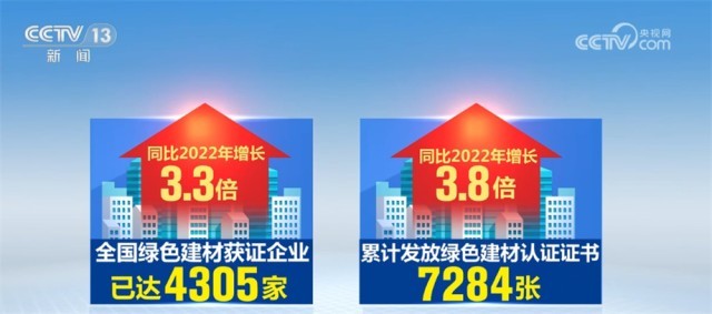 目前,全國(guó)綠色建材獲證企業(yè)已達(dá)到4305家,累計(jì)發(fā)放綠色建材認(rèn)證證書(shū)7284張,同比2022年分別增長(zhǎng)3.3和3.8倍。