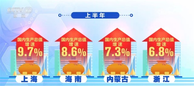 從上半年各省份的國內(nèi)生產(chǎn)總值增速看,江蘇、浙江等15個省份增速超過全國5.5%的增速,其中,上海、海南、內(nèi)蒙古和浙江等省份增速均在6.8%以上,廣東、江蘇、山東等21個省份的國內(nèi)生產(chǎn)總值增速超過了各自一季度的增速,經(jīng)濟增長恢復勢頭明顯。