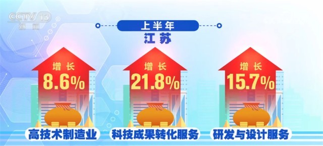 江蘇、浙江、安徽把創(chuàng)新當(dāng)做制造業(yè)升級的著力點。上半年,江蘇高技術(shù)制造業(yè)增長8.6%,科技成果轉(zhuǎn)化服務(wù)、研發(fā)與設(shè)計服務(wù)分別增長21.8%和15.7%。浙江上半年,科學(xué)研究和技術(shù)服務(wù)業(yè)投資增長52.2%。規(guī)模以上工業(yè)中,新產(chǎn)品產(chǎn)值率已經(jīng)達到41.4%,并在持續(xù)提高。安徽上半年裝備制造業(yè)增加值增長了15.3%,汽車產(chǎn)業(yè)增長42.6%,光伏產(chǎn)業(yè)增長了一倍。