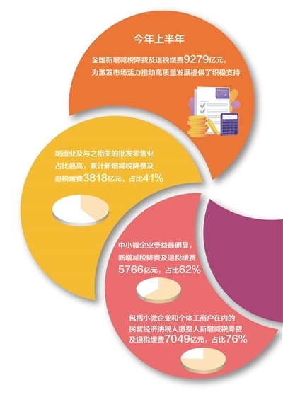 上半年全國新增減稅降費及退稅緩費9279億元 稅費紅利增強企業(yè)發(fā)展底氣