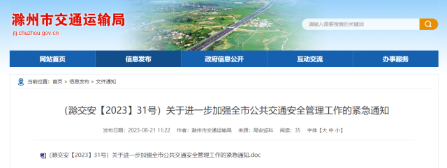 8月20日中午,來安城鄉(xiāng)公交有限公司一輛公交車在南京林場附近突然起火,造成2人死亡、5人受傷。為深刻吸取事故教訓(xùn),確保公共交通安全,切實保障人民群眾生命財產(chǎn)安全,現(xiàn)就加強全市公共交通安全管理工作緊急通知如下: