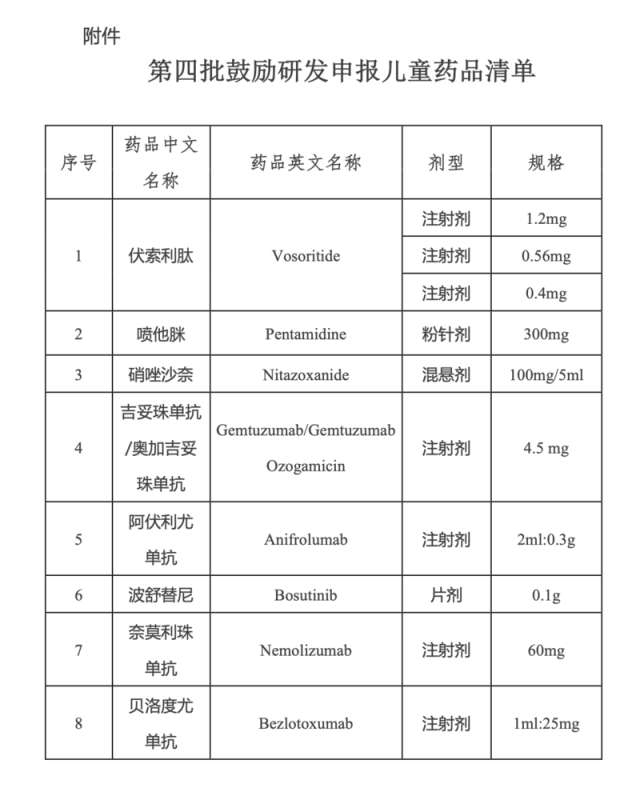國家衛(wèi)健委發(fā)布的相關政策解讀中指出,《第四批清單》中的藥品在遴選時,跟進全球最新臨床進展,將近年來國外已上市國內(nèi)未上市的兒童藥品和國內(nèi)已上市但無兒童適宜劑型規(guī)格藥品作為重點考慮,著重選擇安全性、有效性、適宜性高的品種。例如治療白血病的吉妥珠單抗、波舒替尼等藥品。