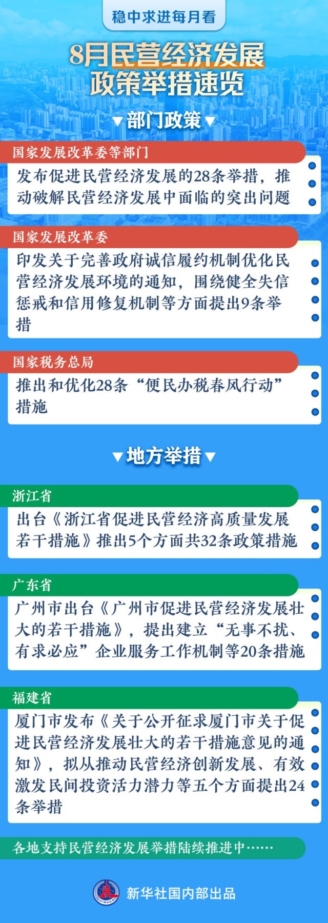 8月份以來(lái),針對(duì)民營(yíng)企業(yè)面臨的痛點(diǎn)、堵點(diǎn)、難點(diǎn),從中央到地方密集推出系列政策舉措,旨在激發(fā)民間投資活力,鼓勵(lì)企業(yè)敢闖、敢投、敢擔(dān)風(fēng)險(xiǎn)。