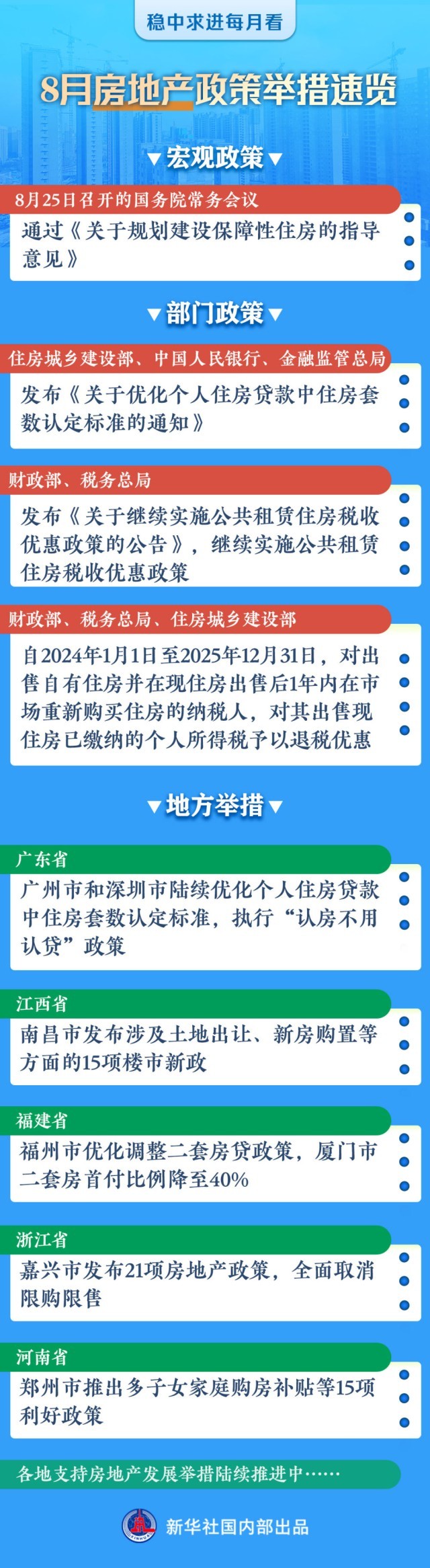 8月以來(lái),各地購(gòu)房者頻頻收到利好消息:江西省南昌市發(fā)布涉及土地出讓、新房購(gòu)置等方面的15項(xiàng)樓市新政;廈門市二套房首付比例降至40%;嘉興市全面取消限購(gòu)限售;鄭州市推出多子女家庭購(gòu)房補(bǔ)貼等15項(xiàng)利好政策……