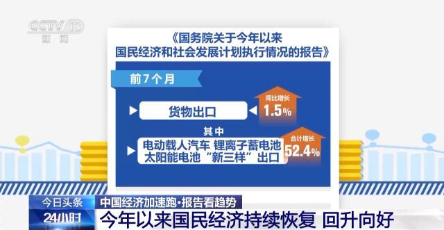 報(bào)告指出,前7個(gè)月貨物出口同比增長(zhǎng)1.5%,其中電動(dòng)載人汽車(chē)、鋰離子蓄電池、太陽(yáng)能電池“新三樣”出口合計(jì)增長(zhǎng)52.4%。知識(shí)密集型服務(wù)貿(mào)易較快增長(zhǎng),旅行服務(wù)貿(mào)易明顯恢復(fù),上半年服務(wù)進(jìn)出口同比增長(zhǎng)8.5%。推動(dòng)外資標(biāo)志性項(xiàng)目落地實(shí)施,外貿(mào)外資平穩(wěn)發(fā)展。